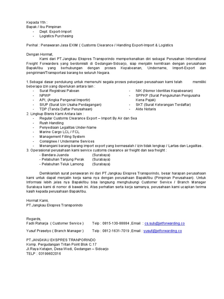 Contoh Surat Penawaran Jasa Forwarding : 33 Contoh Surat Penawaran Barang Produk Jasa Dan Kerjasama Lengkap : Tujuan dibuat surat penawaran ini.